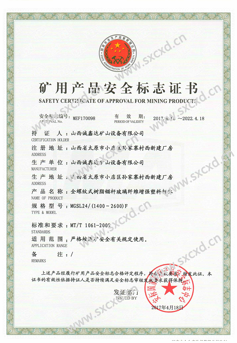 24錨桿安標(biāo)證書