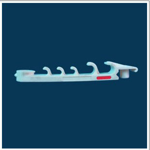 ② 兩個(gè)電纜掛鉤串聯(lián)時(shí),先將一個(gè)電纜掛鉤的掛孔對(duì)準(zhǔn)另一個(gè)電纜掛鉤的掛桿,兩電纜掛鉤的直桿段成直角,用力按入,使掛桿進(jìn)入掛孔,然后手持弧形鉤旋轉(zhuǎn),使兩電纜掛鉤直桿呈180度,一個(gè)電纜掛鉤的保險(xiǎn)扣剛好嵌入另一個(gè)電纜掛鉤的凹槽中央。多個(gè)電纜掛鉤的兩兩串聯(lián),依次類推。