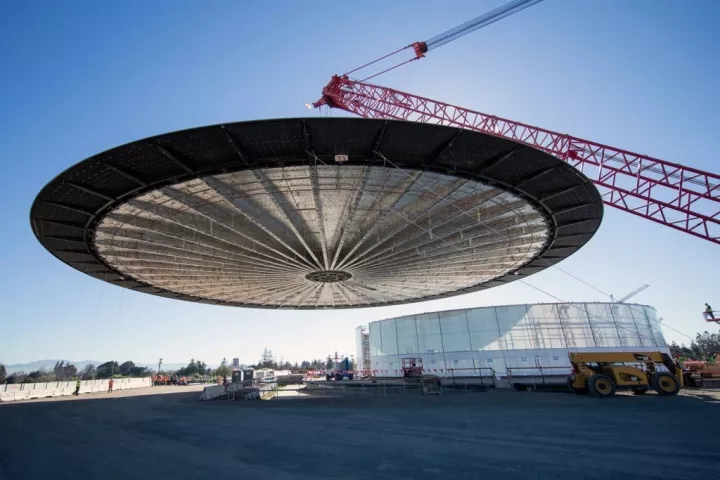 看了施工照片應(yīng)該有所了解,這個重量的屋蓋可以采用整體吊裝式施工,如果換成鋼板,大約會變成320~480噸的“大胖子”正是因?yàn)镃FRP輕質(zhì)高強(qiáng),才經(jīng)受得住周圍玻璃結(jié)構(gòu)的支撐,才有了這“漂浮”的屋頂