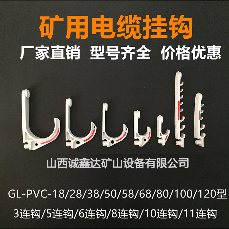 礦用電纜掛鉤主要包括:18型、28型、38型、50型、58型、68型、80型、100型、120型、3連鉤、5連鉤、6連鉤、8連鉤、10連鉤、11連鉤、管道掛鉤、水袋掛鉤、鋼絲扣、固定扣、GL-PVC18、GL-PVC28、GL-PVC38、GL-PVC50、GL-PVC58、GL-PVC68、GL-PVC80、GL-PVC100、GL-PVC120、18三連鉤、70三連鉤、五連鉤、小六連鉤、18六連鉤、八連鉤等;還可以根據(jù)客戶的需要進行定制,山西誠鑫達公司有煤安認證,質量均符合國家標準。