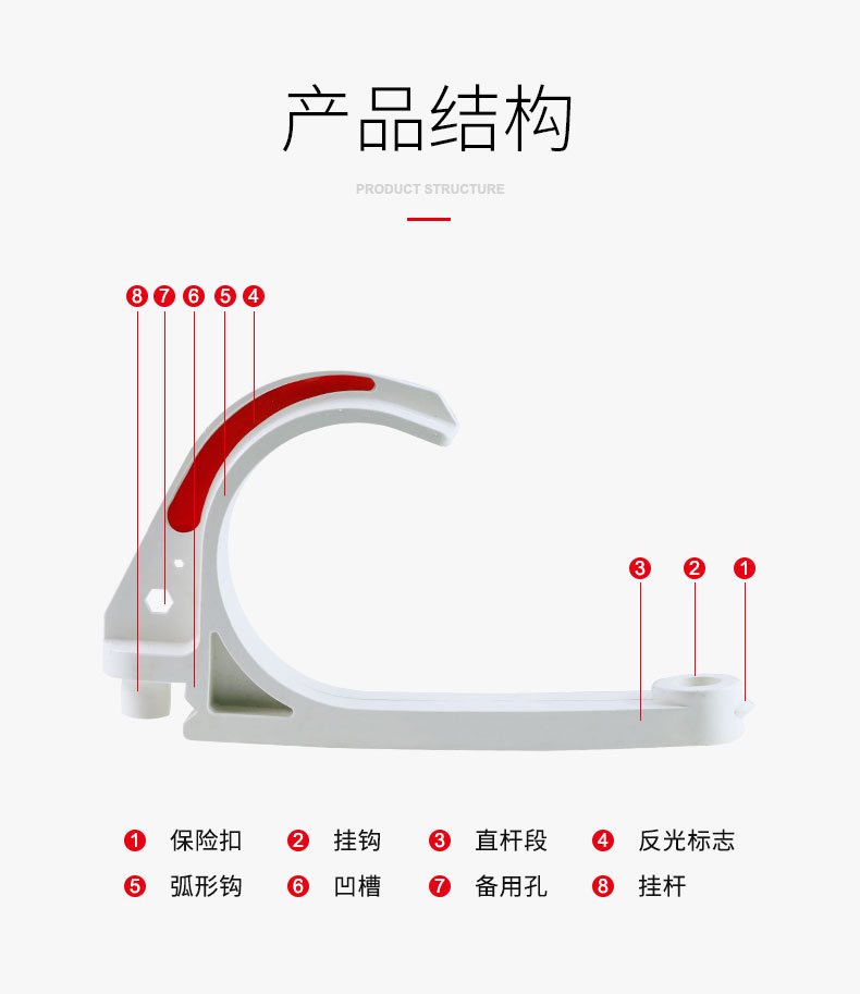 6、結構簡單合理,使用靈活,可根據(jù)實際需要任意調整電纜掛鉤的數(shù)量。