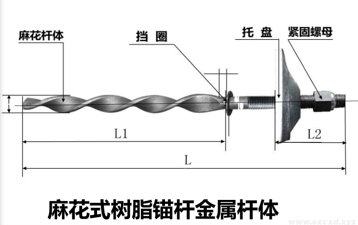 麻花式樹脂錨桿金屬桿體由不同強(qiáng)度材質(zhì)的桿體及其附件與配套樹脂錨固劑一同使用。根據(jù)設(shè)計錨固長度,將桿體插入放好錨固劑的孔洞中,經(jīng)過攪拌后,錨固劑產(chǎn)生化學(xué)反應(yīng),在一定時間內(nèi),將桿體與煤巖粘合為一體固定在巖壁中螺紋端加裝防護(hù)網(wǎng)及承載托盤后,用螺母擰緊以達(dá)到支護(hù)作用,從而有效的形成高強(qiáng)預(yù)應(yīng)力支護(hù)能夠控制頂板穩(wěn)定,適應(yīng)外圍巖石移動,能夠有效減少甚至消除離層,解決頂板垮冒,由多種支護(hù)形式和結(jié)構(gòu)組成預(yù)應(yīng)力支護(hù)體系,實現(xiàn)了機(jī)械安裝,大大提高了支護(hù)的安全可靠性。