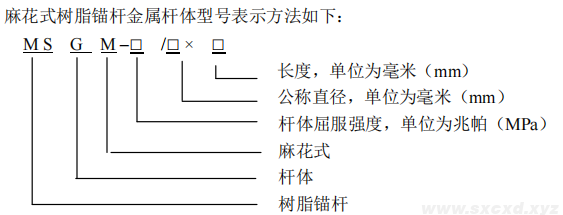 其中:MS指的是樹脂錨桿,G是桿體,M是麻花式,235是桿體屈服強(qiáng)度,單位為MPa,16是直徑,1800是長度。